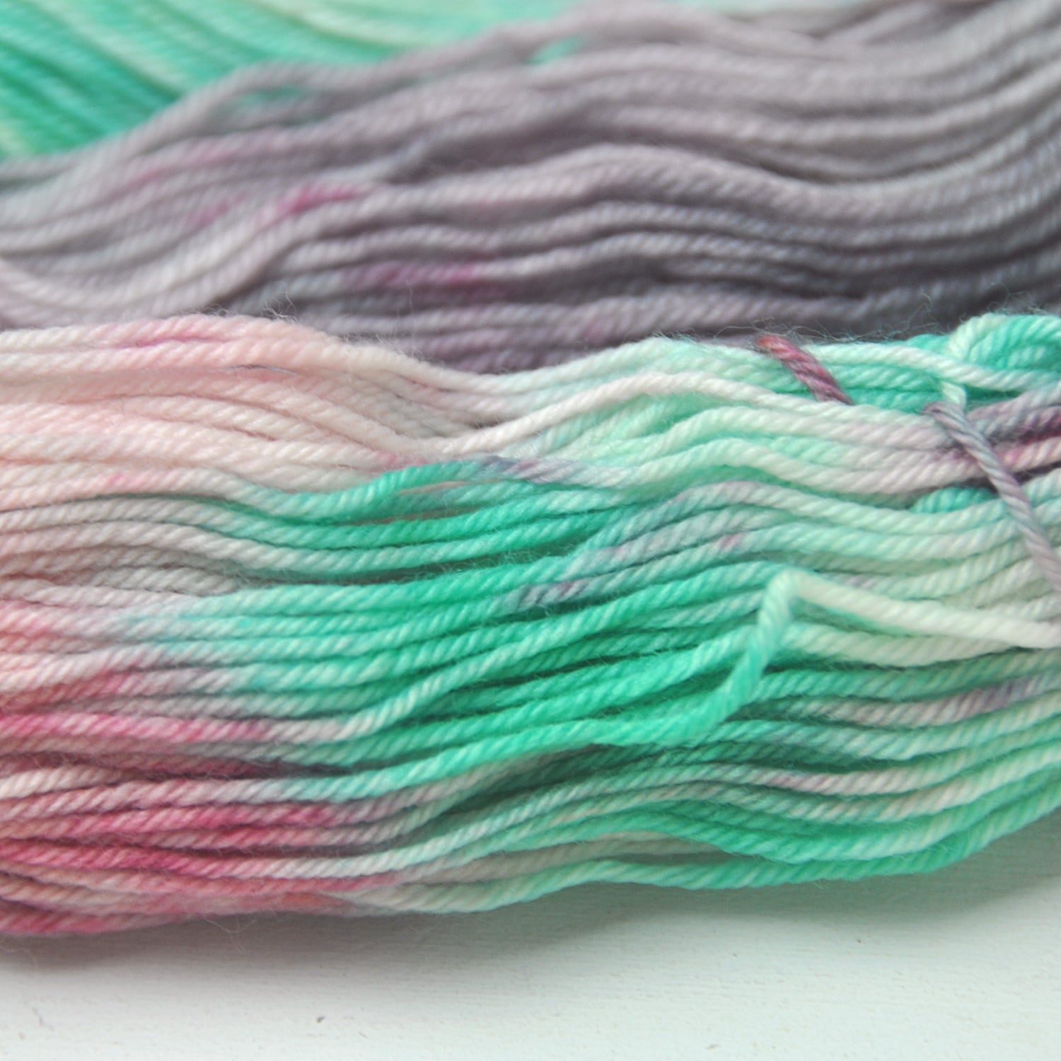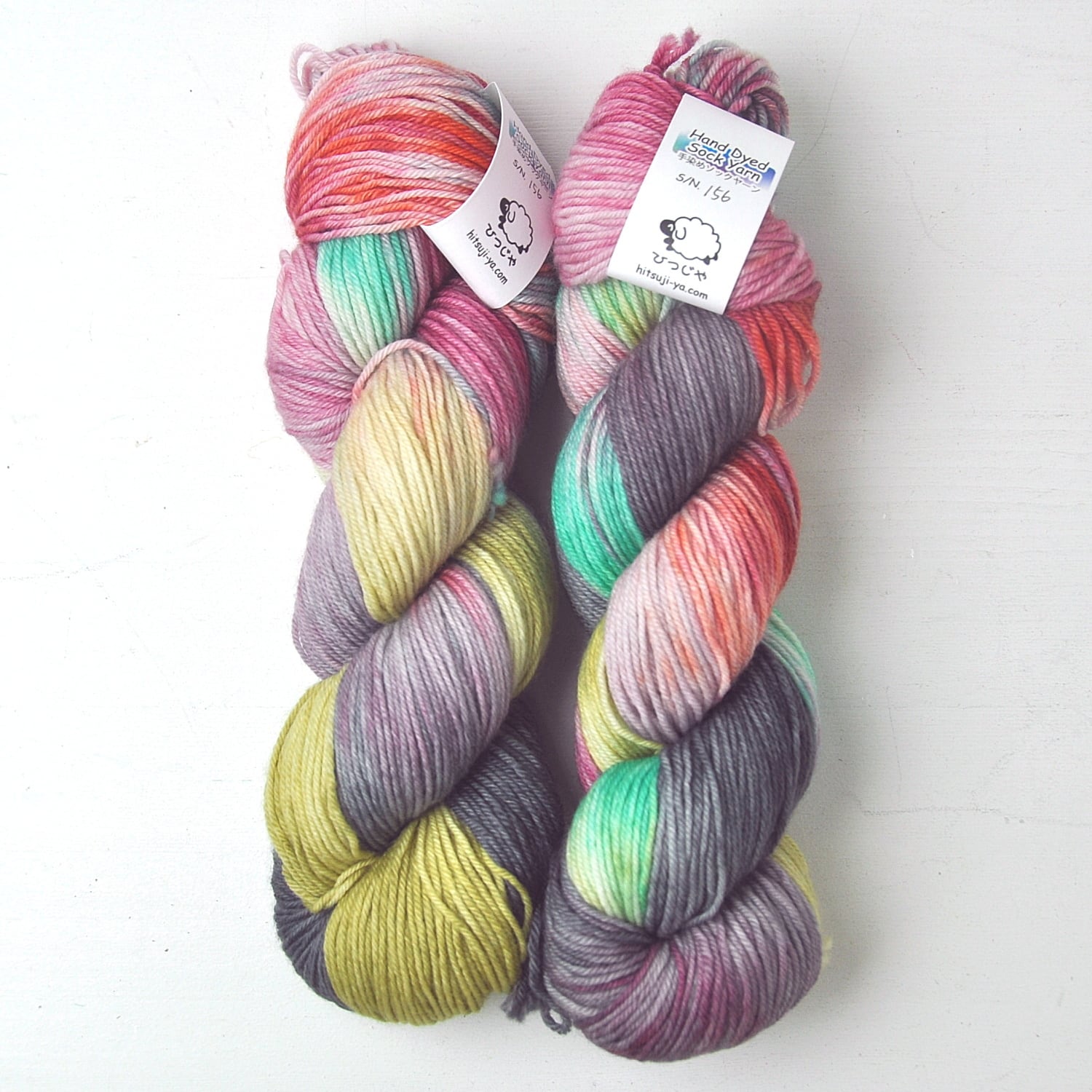 化学染料を使って多色染めした、ウール85%ナイロン15%の毛糸です。