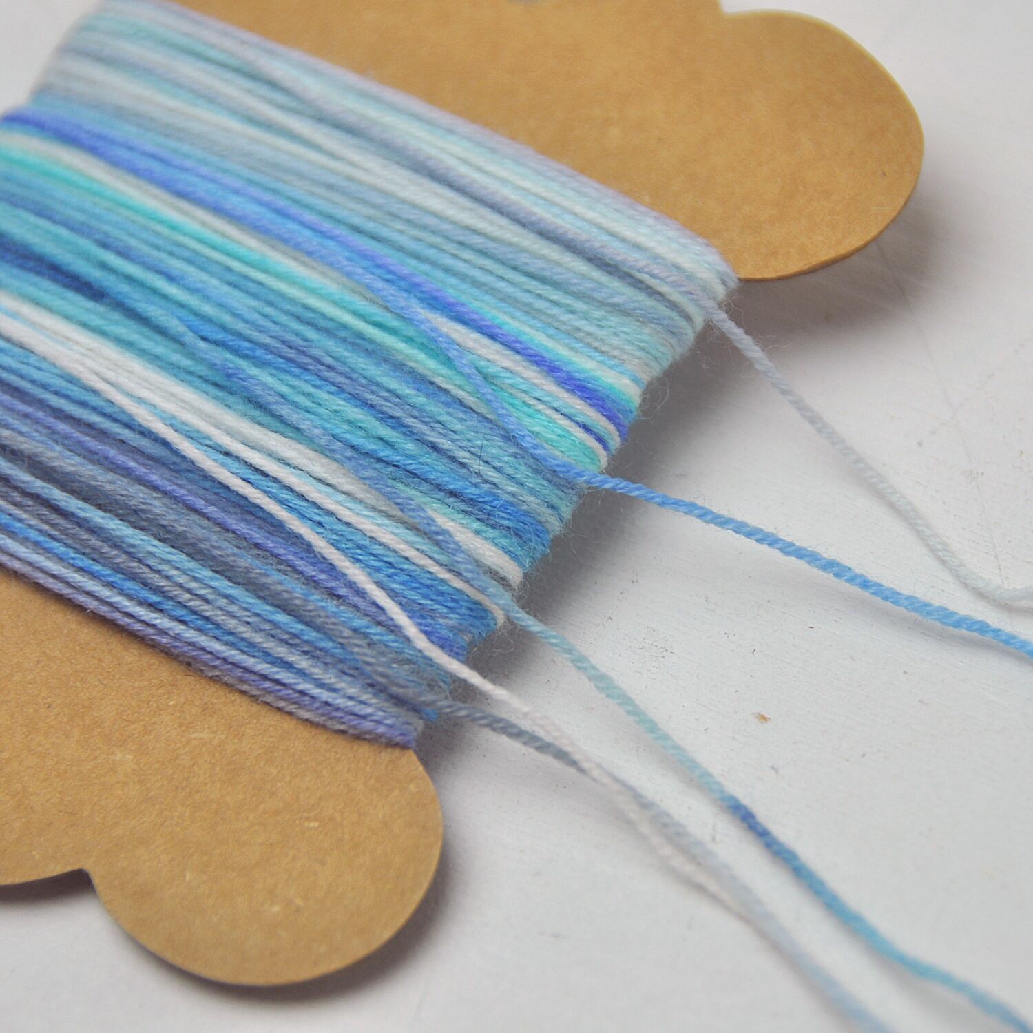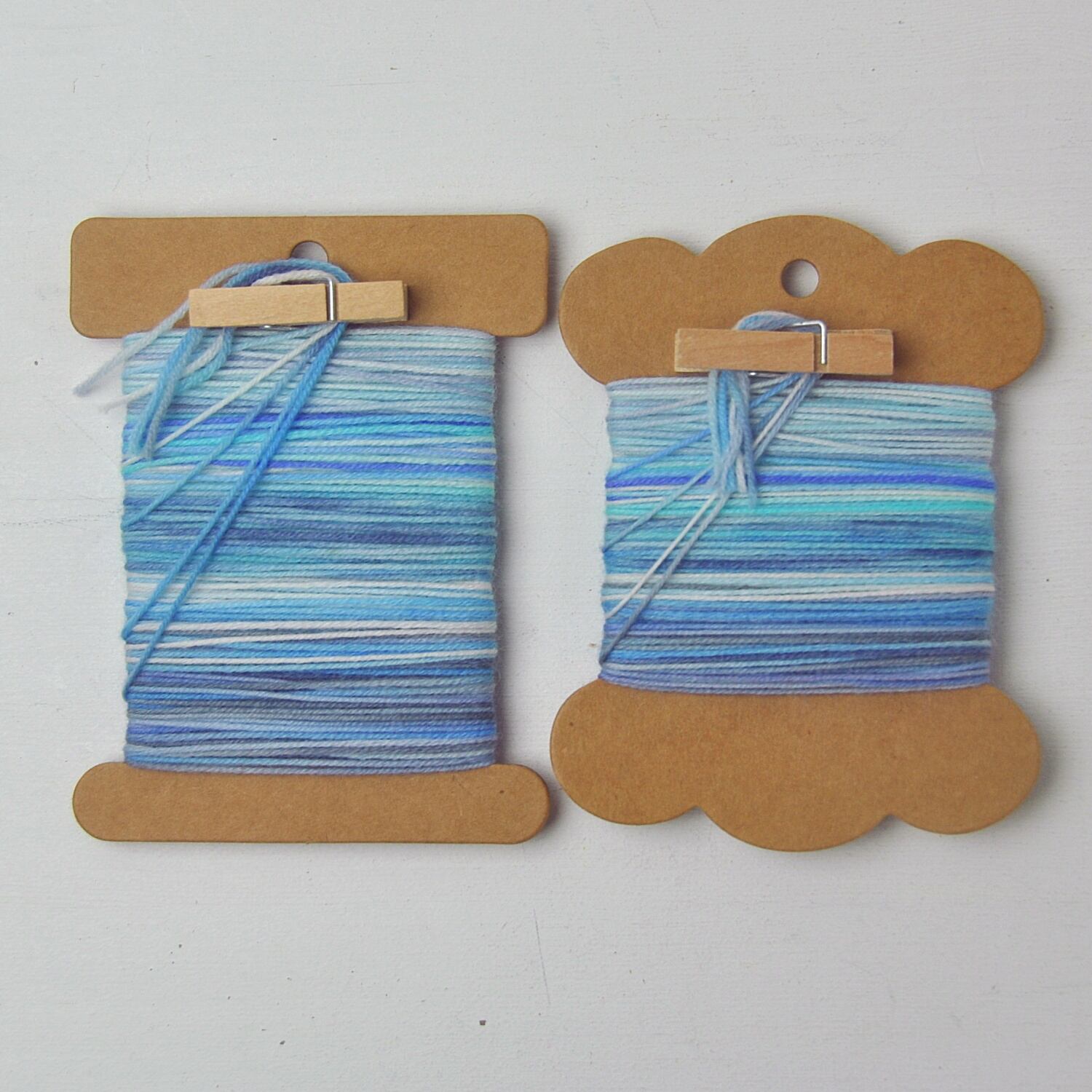 色がどんどん変化していく多色染めなので、接着剤などでウッドピンに巻き付けてもかわいく仕上がります。
