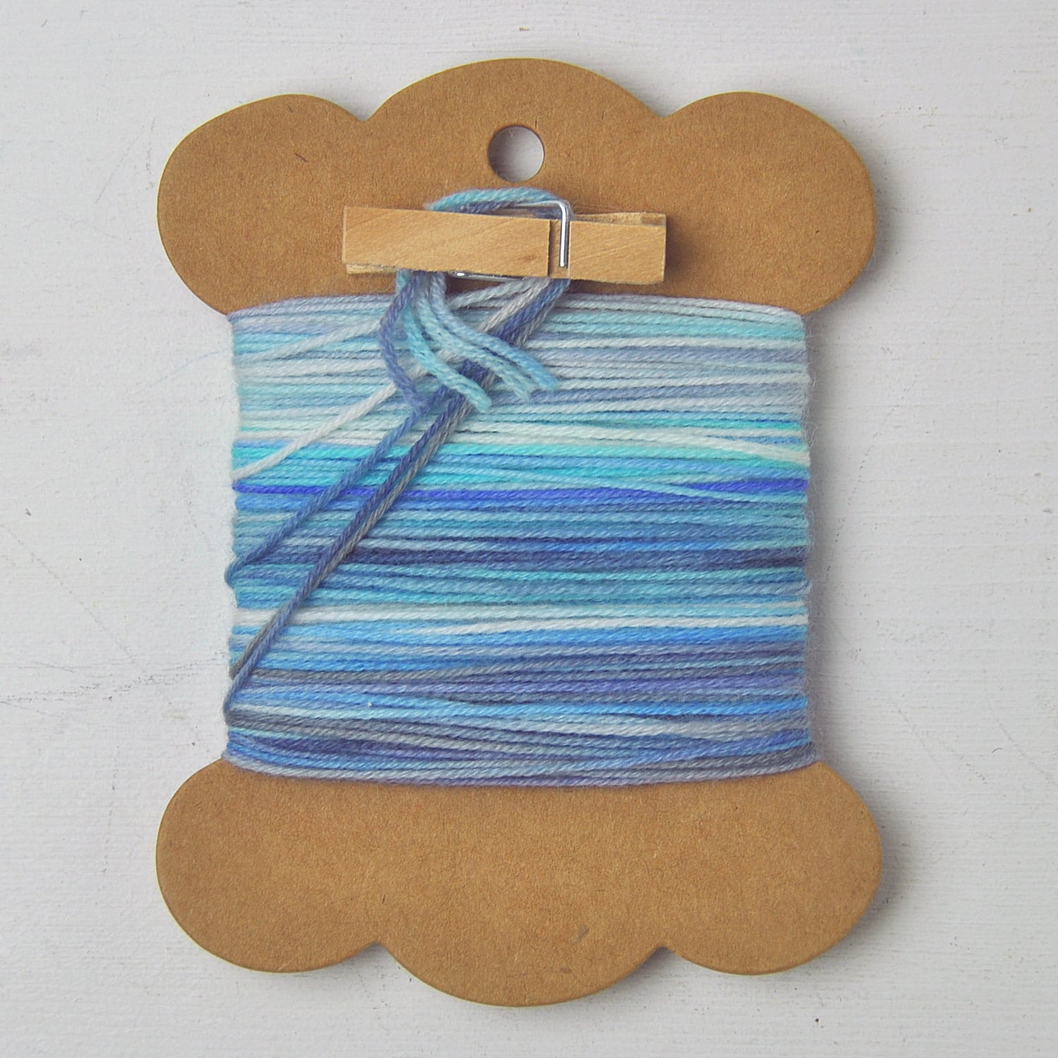 ●紙製スプールに巻いたメリノ紡績糸は全て多色のムラ染めです。5色セットになっており、各色2個は作れる分量です。