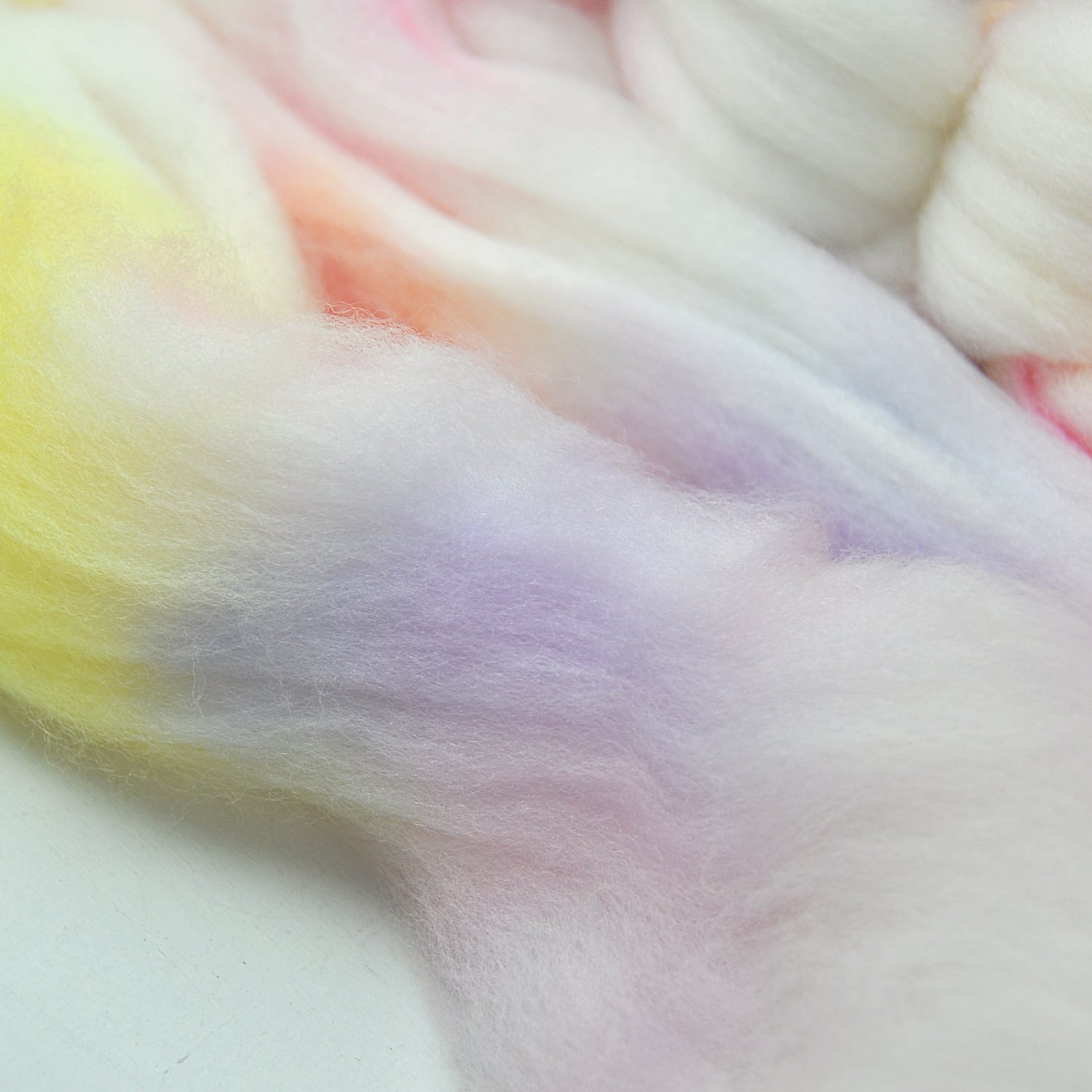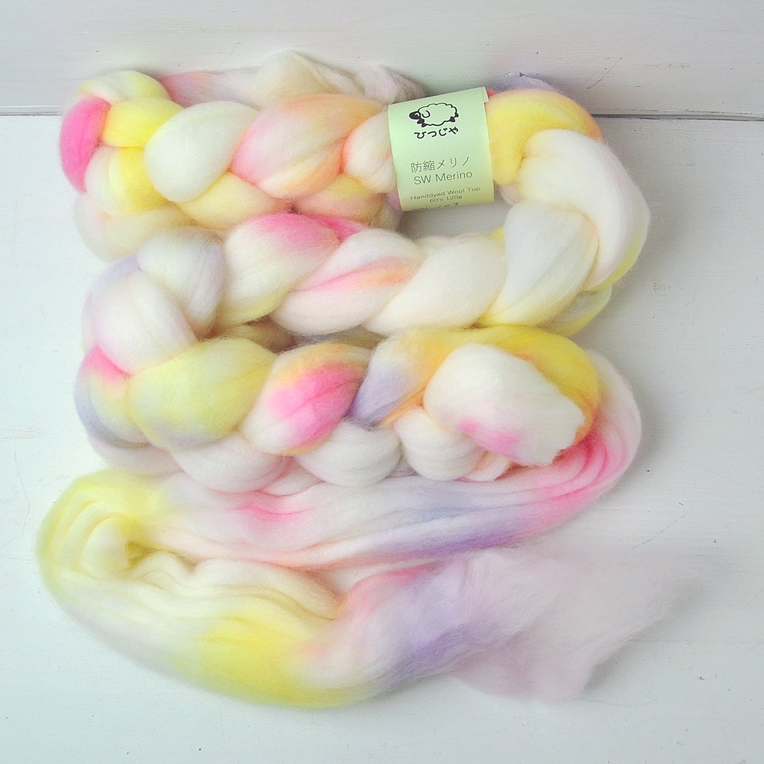 防縮(スーパーウォッシュ)加工済み羊毛のため、繊維そのものが大変フェルト化しづらくなっています。織り(縮絨しない)や石鹸水フェルト、ウェットフェルト(フェルト化しない)には向きません。