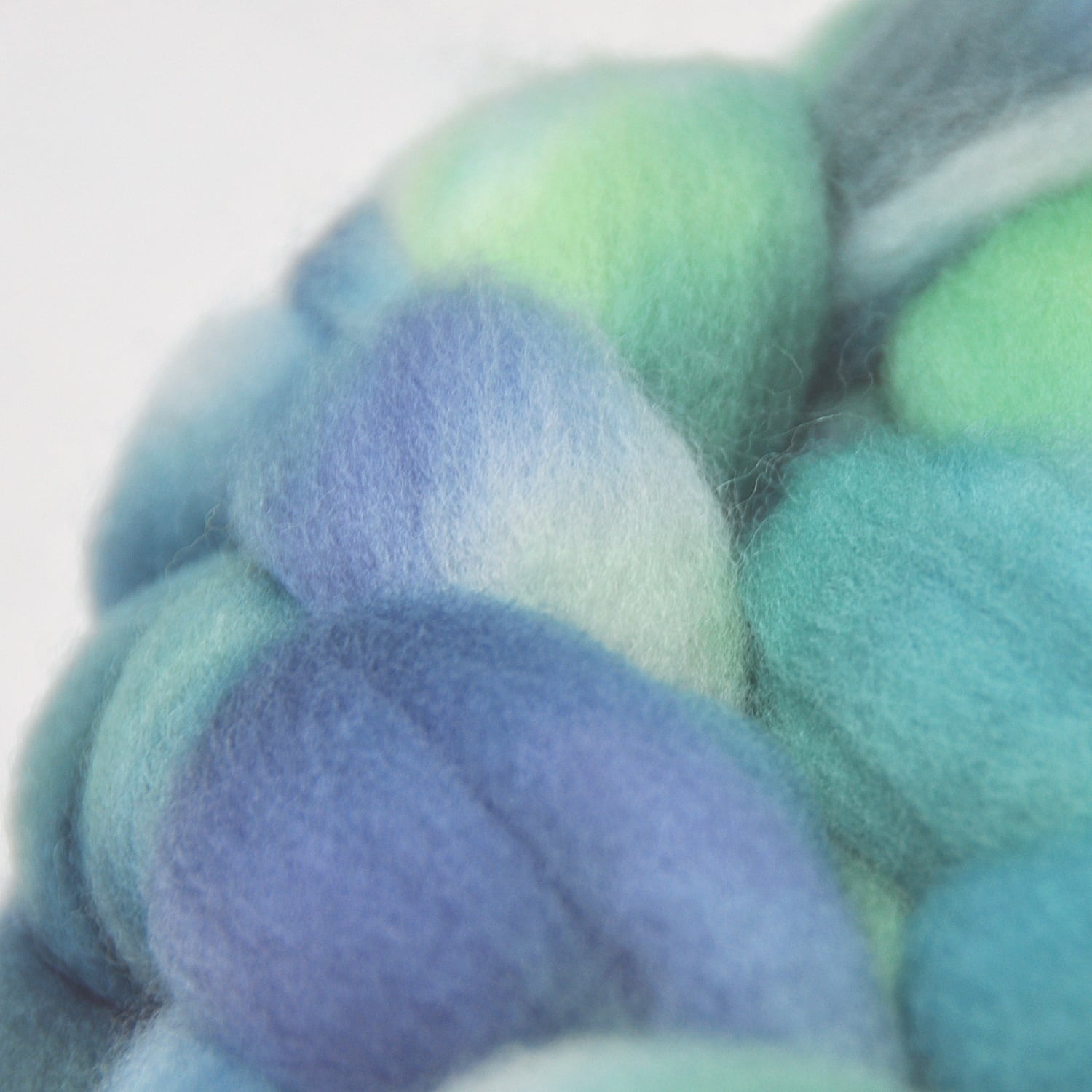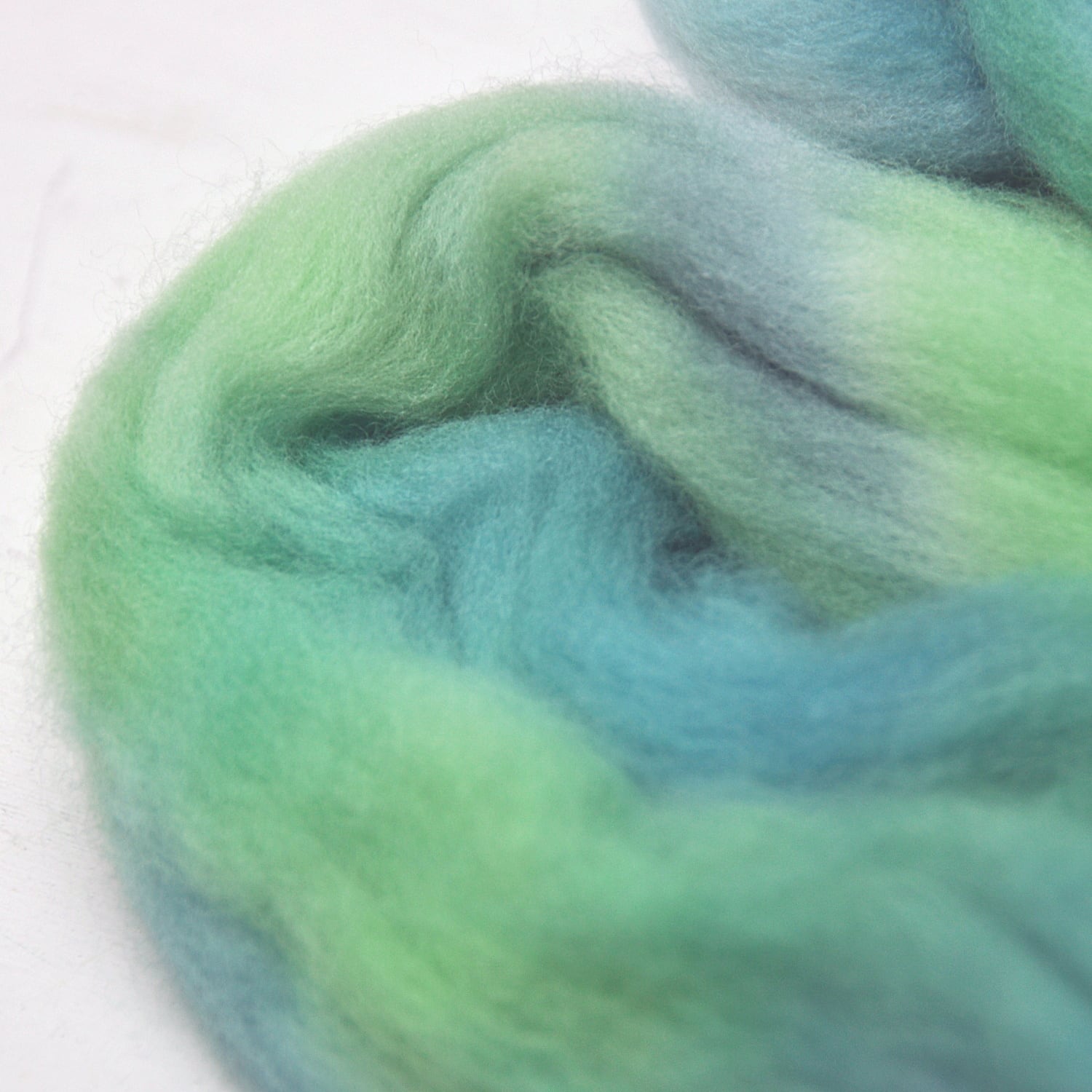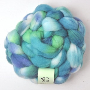 表面が滑らかで繊維同士が絡み合いにくいので引き出しやすく、とても気持ちよく紡げるウールトップです。