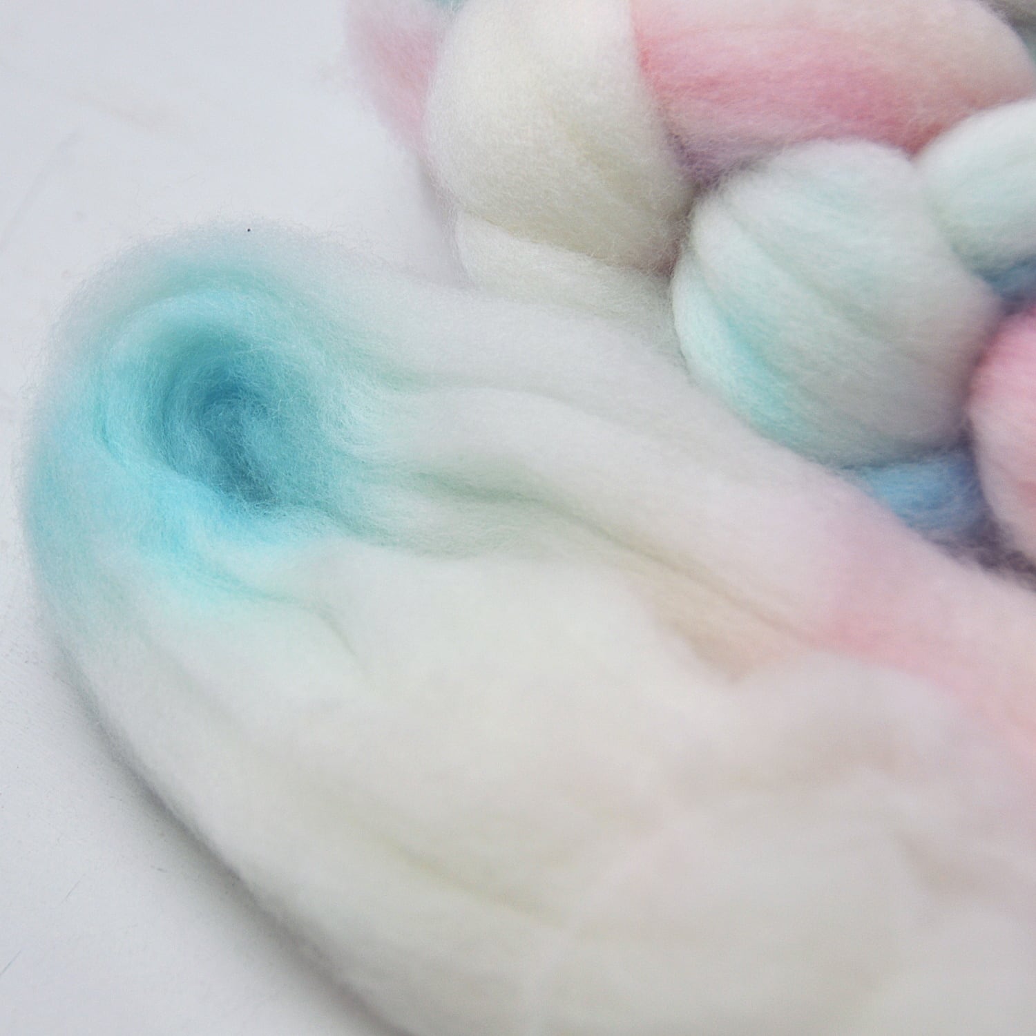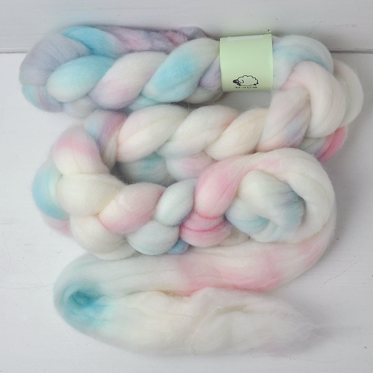 表面が滑らかで繊維同士が絡み合いにくいので引き出しやすく、とても気持ちよく紡げるウールトップです。