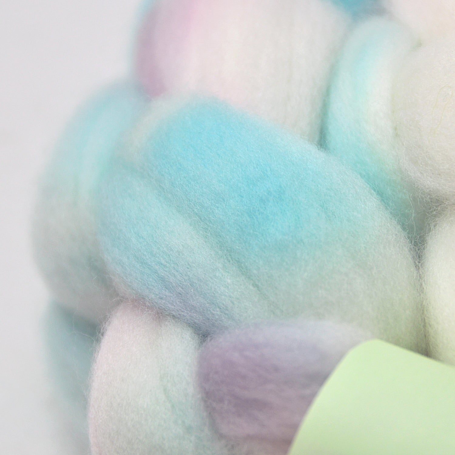 防縮(スーパーウォッシュ)加工済み羊毛のため、繊維そのものが大変フェルト化しづらくなっています。織り(縮絨しない)や石鹸水フェルト、ウェットフェルト(フェルト化しない)には向きません。