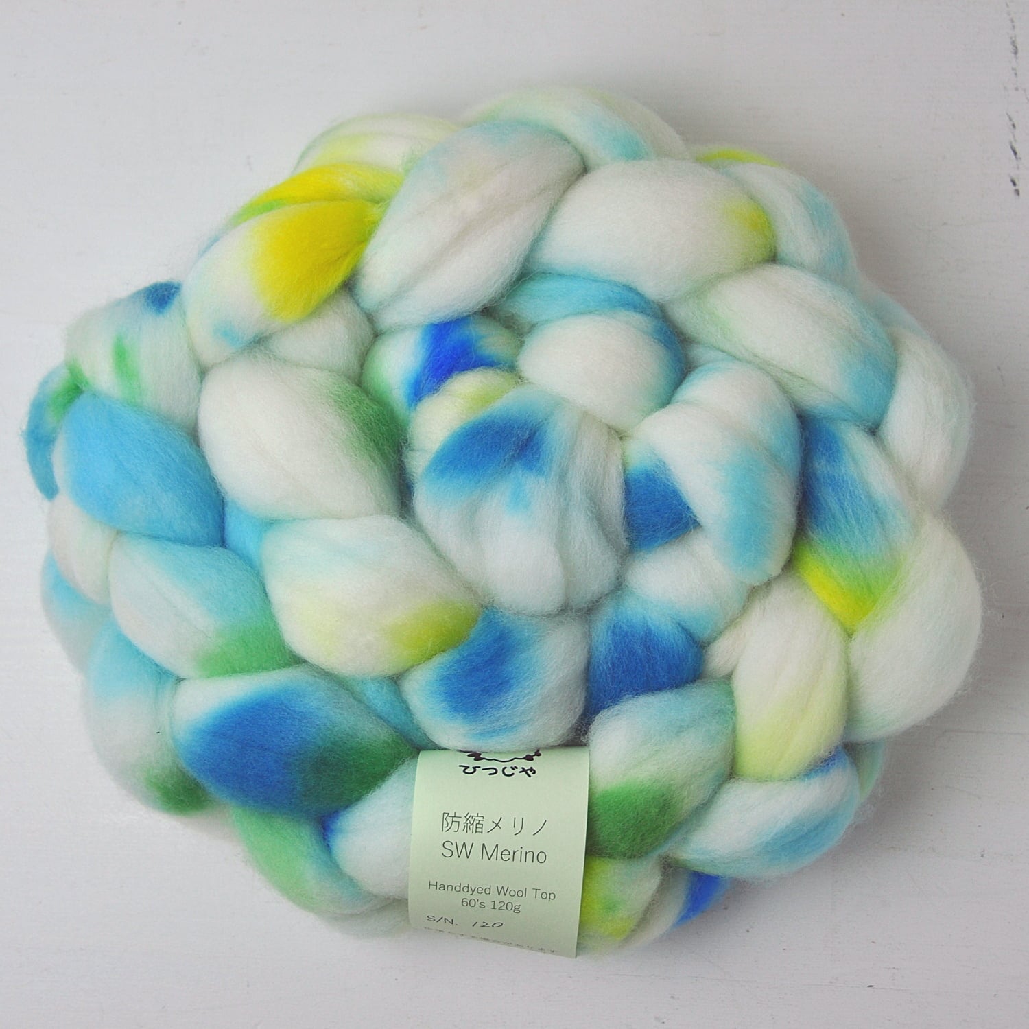 防縮(スーパーウォッシュ)加工を施したメリノ60’s(繊維の太さ 約24.5μ)を使用した、多色染めの手染め羊毛です。