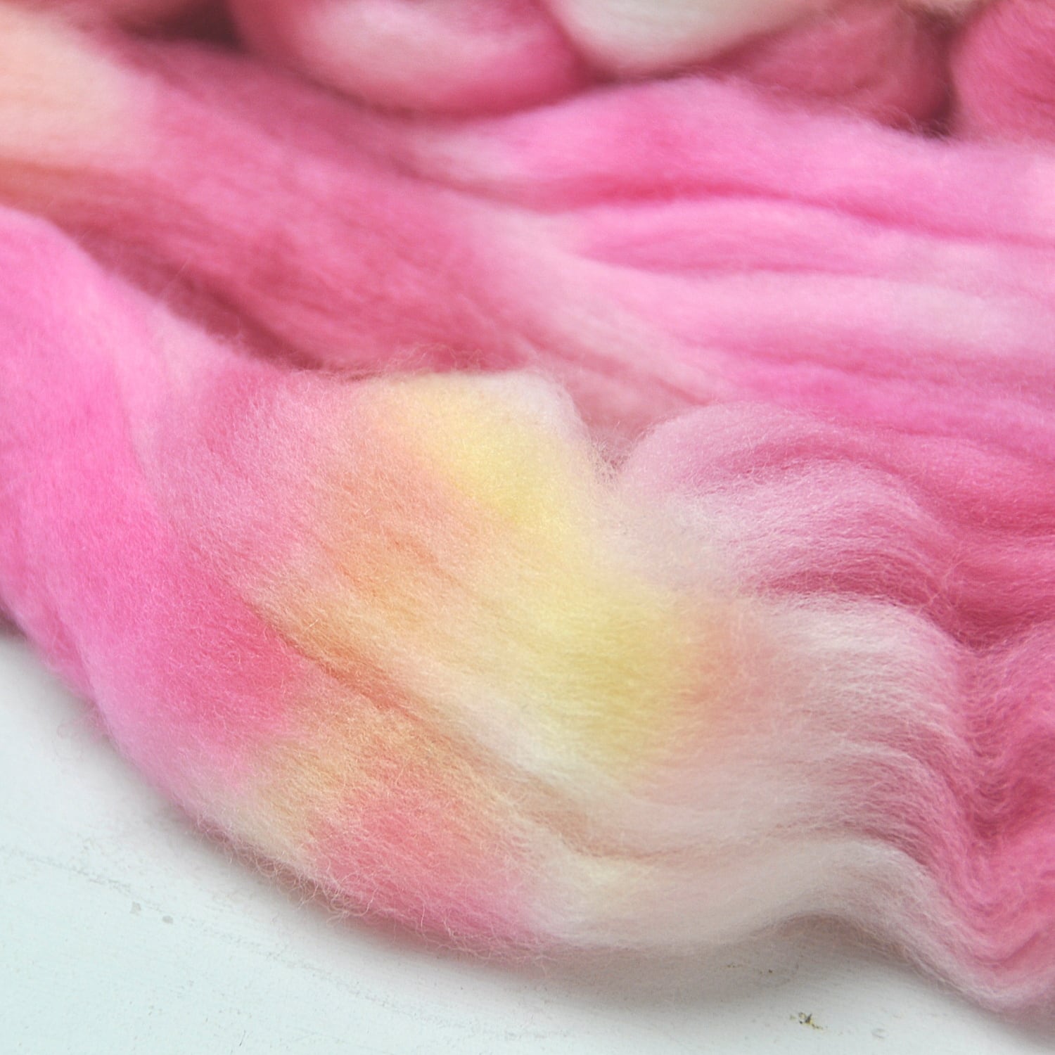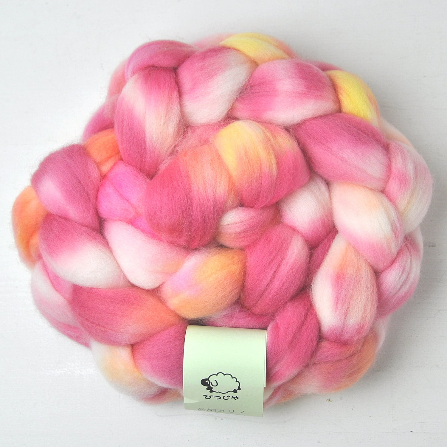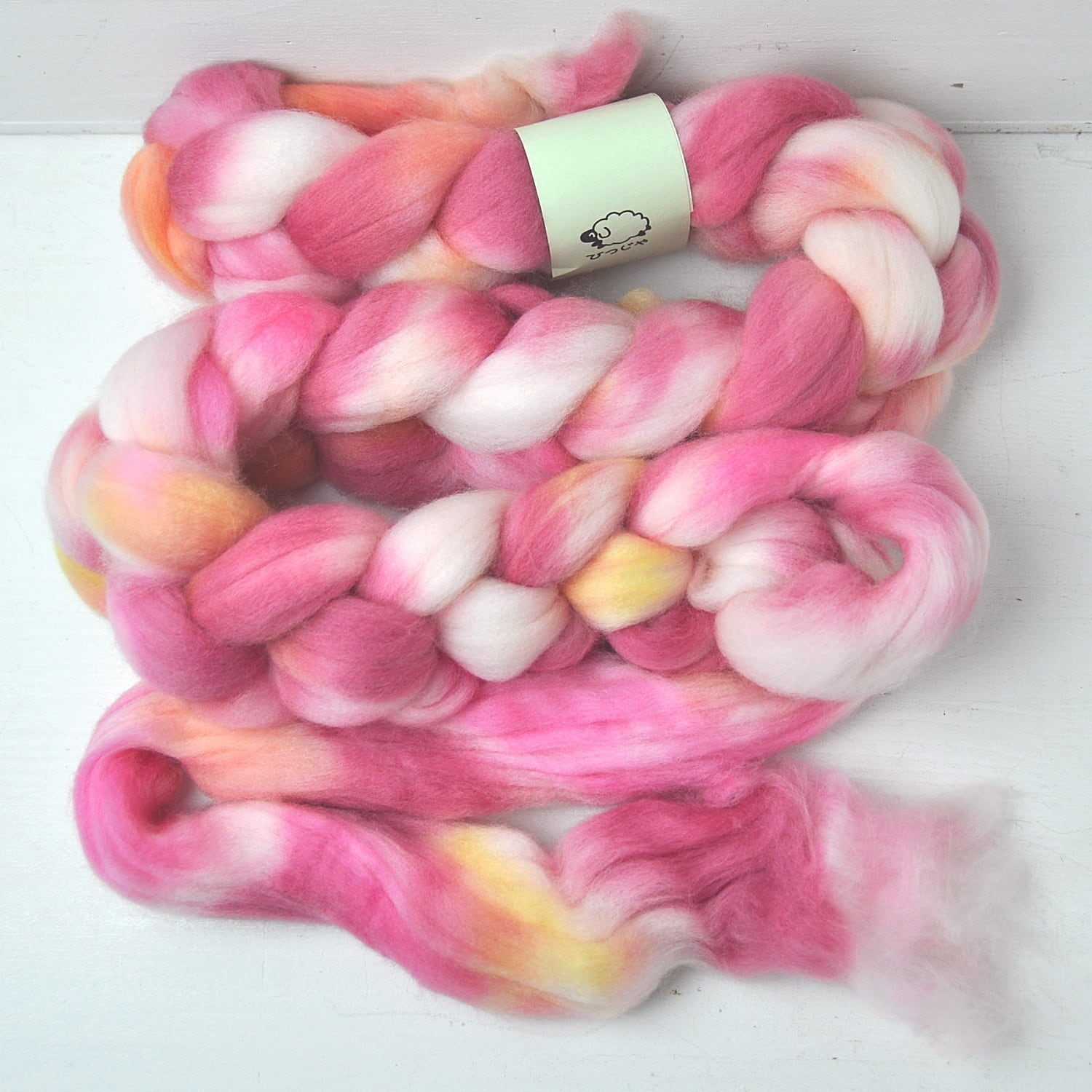 The fiber is unspun wool in combed top form.