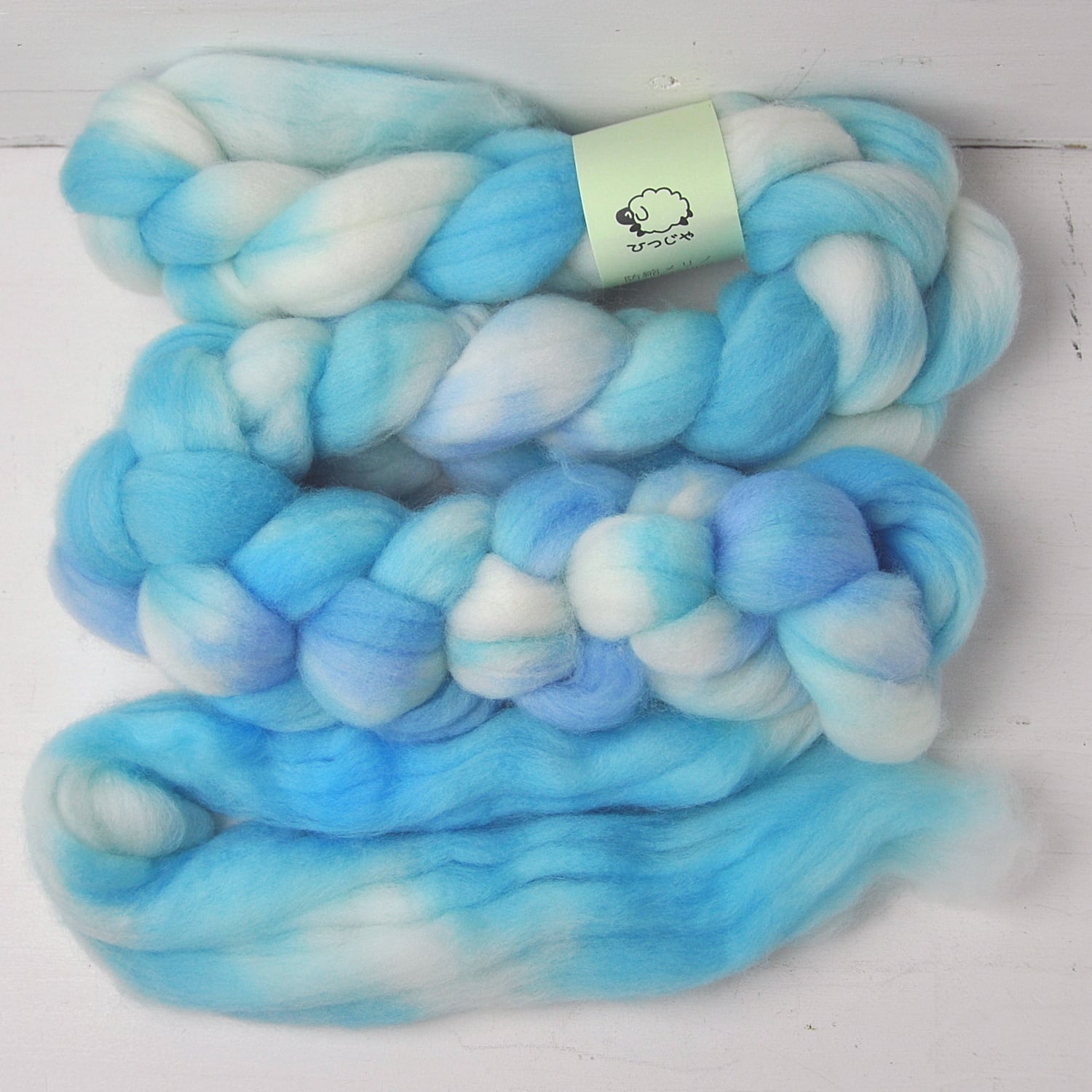 The fiber is unspun wool in combed top form.