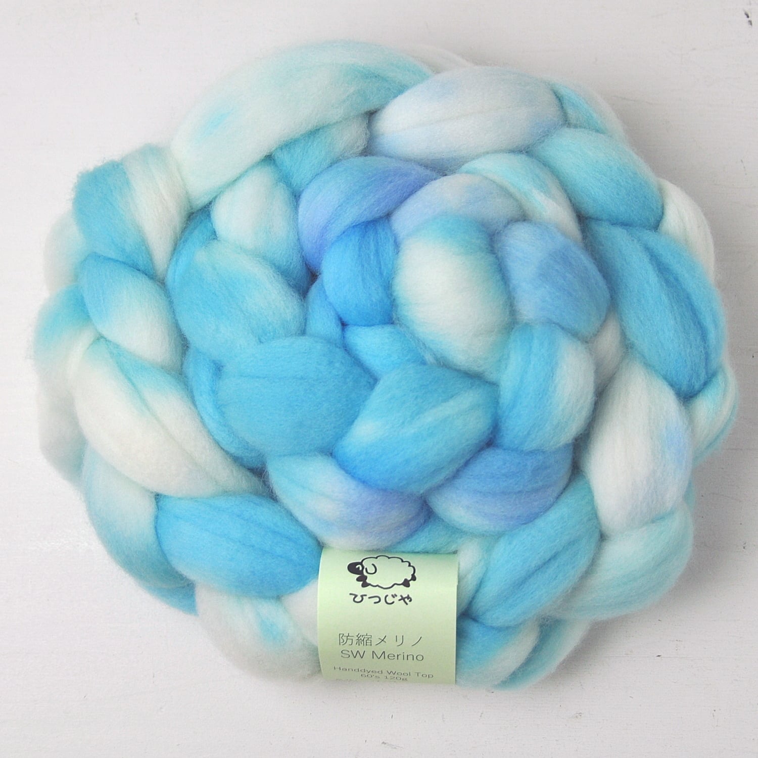 防縮(スーパーウォッシュ)加工を施したメリノ60’s(繊維の太さ 約24.5μ)を使用した、多色染めの手染め羊毛です。