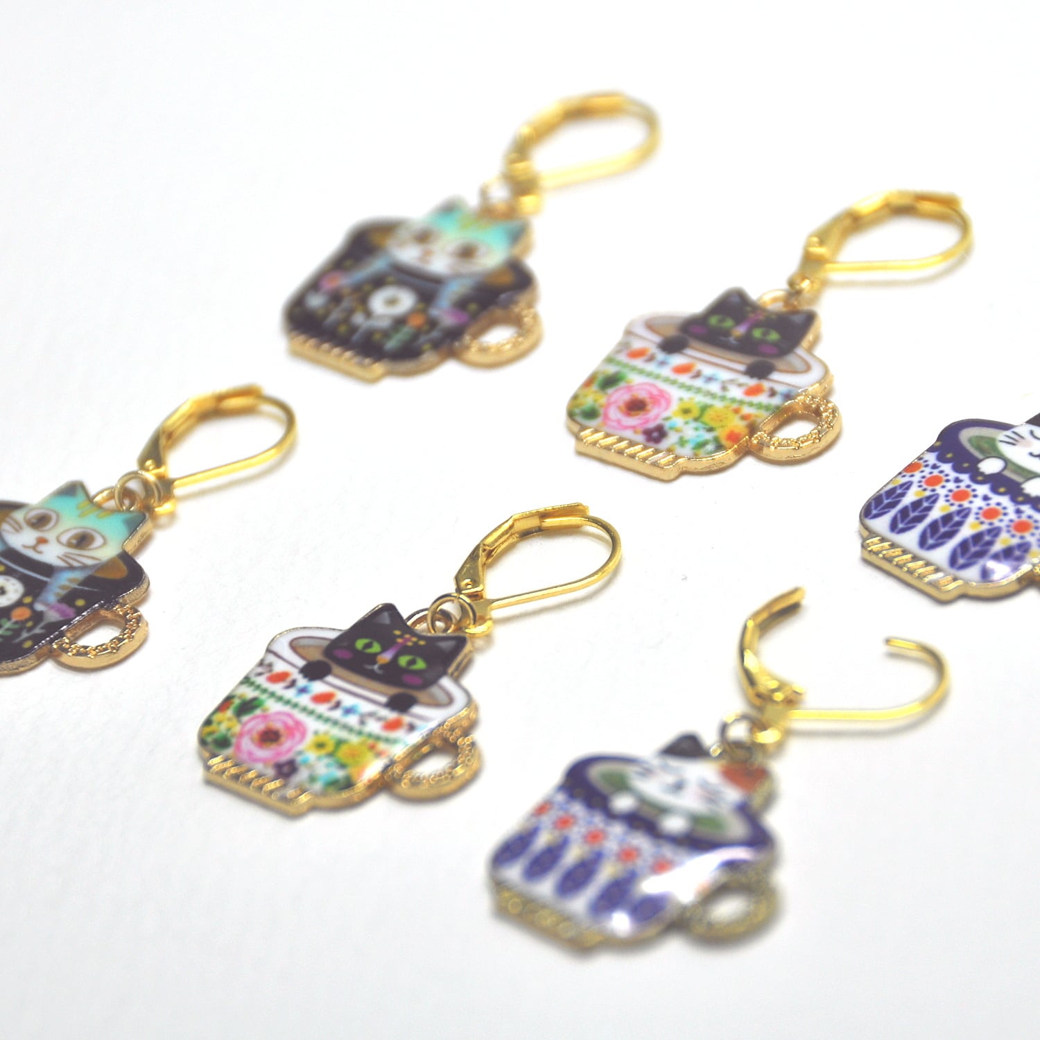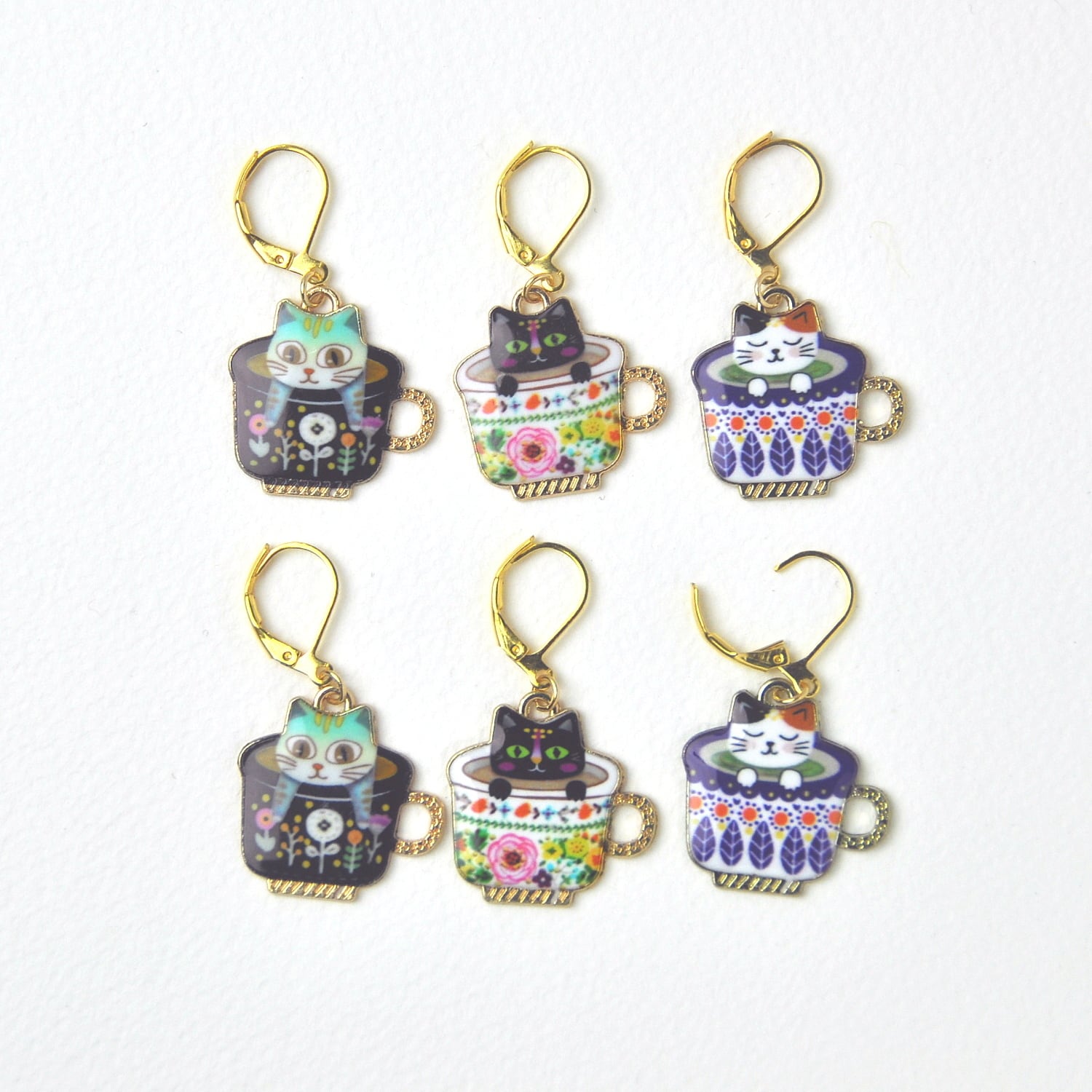 カラフルなカップに入った猫が、あなたの編み物ライフをお助けします♪